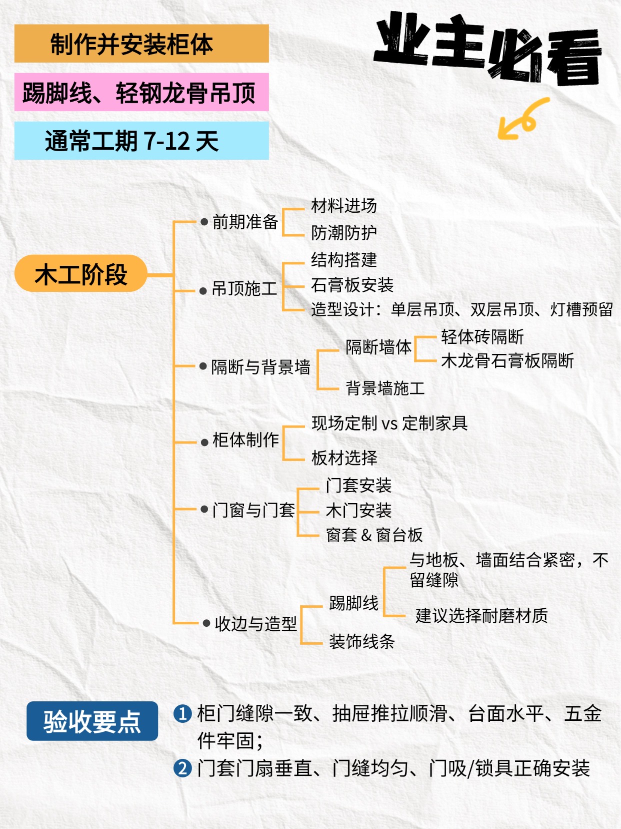 木工阶段进行吊顶和柜体定制;油漆阶段选择环保涂料;安装与收尾包括灯具、洁具、橱柜等整体安装与验收。轩怡家装会全程跟进,保证施工标准化与品质落地。