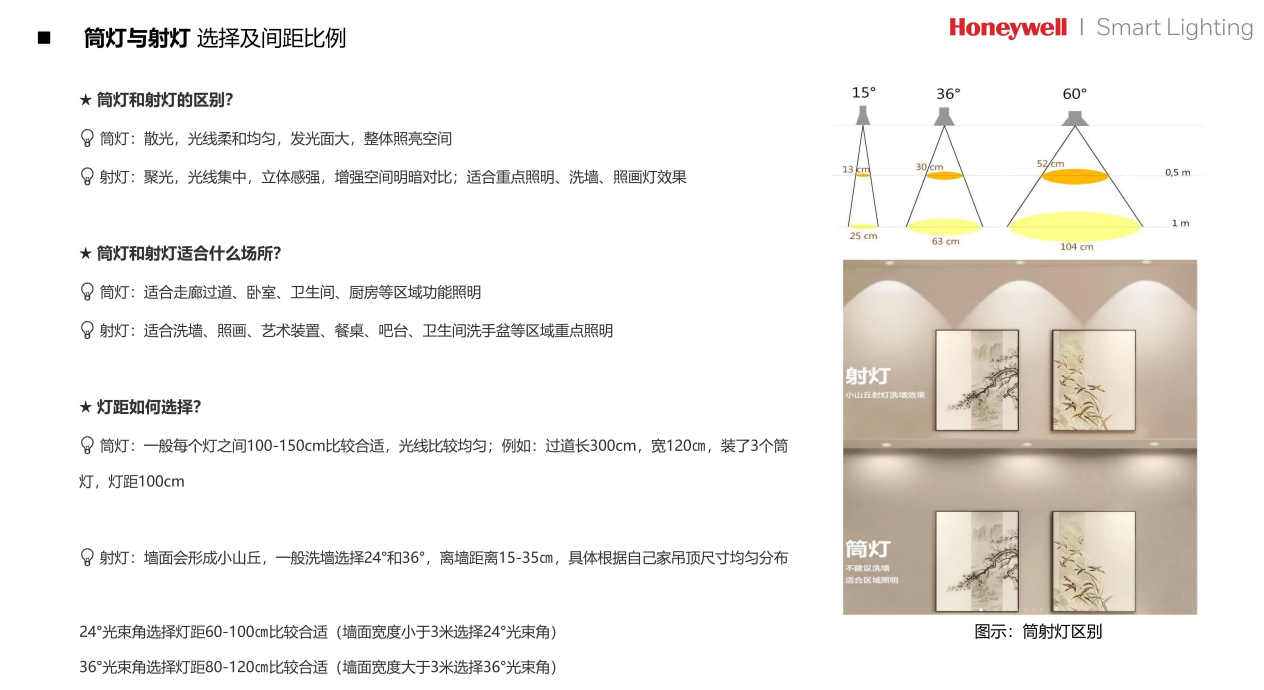 射灯:洗墙选24°光束角(墙面<3米),离墙15-35cm,刚好照出 “小山丘” 装饰效果;