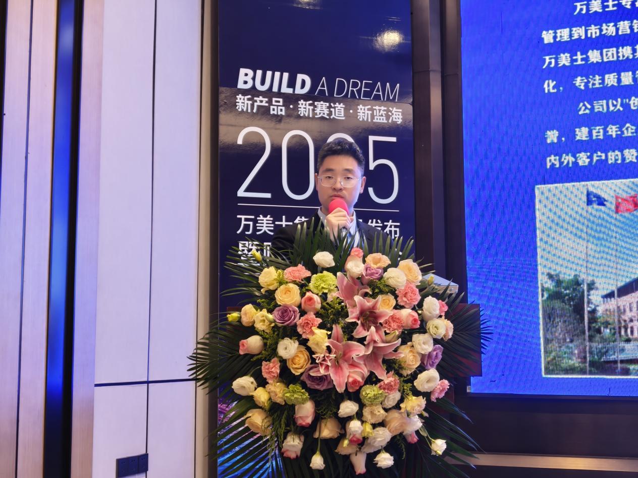 随后,企业宣传片震撼发布,系统呈现万美士从研发、生产到全球认证的硬核实力。