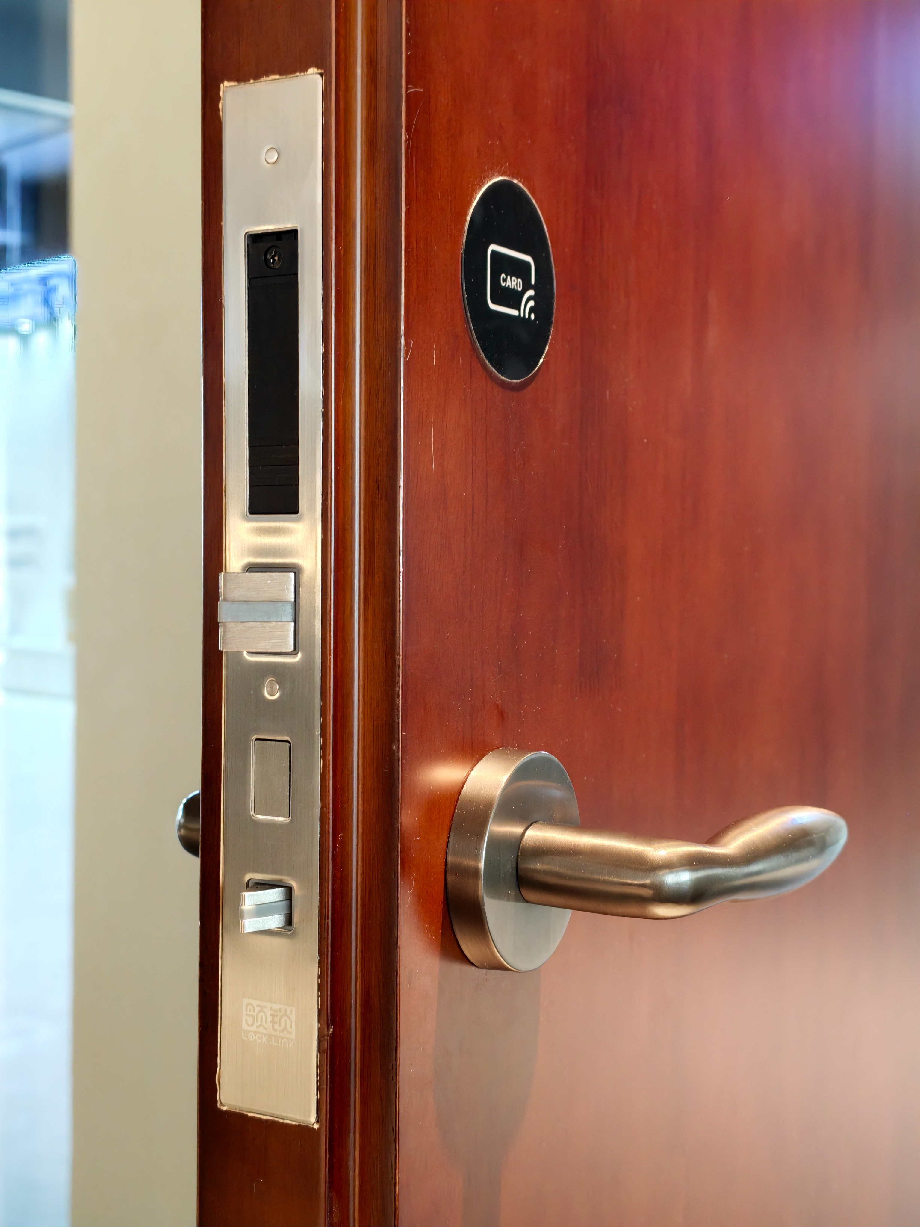 自动反锁:酒店行业主推“自动反锁”功能,标配国际五星级酒店ADB安防配置;客户关门后自动反锁,无需手动拧旋钮反锁,从源头杜绝忘反锁、漏反锁隐患,筑牢酒店安全防线;